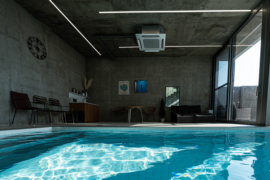 벨37 독채 풀빌라의 사계절 온수 수영장은 폭 3.5미터, 길이 6.6미터, 깊이 1.1미터의 대형 실내 온수풀로 객실 내부에 설치되어 있어 자유롭고 편리하게 이용할 수 있습니다. 또한 수영장과 홀 사이에 칸막이 벽이 없는 오픈형 구조로 설계 시공되어 더욱 안전하고 편리하게 물놀이를 즐길 수 있습니다.