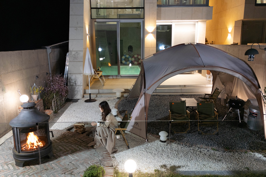 로맨틱한 분위기의 야외 정원은 캠핑 분위기의 바비큐 시설과 불멍존이 마련되어 있어 둘만의 맛있는 식사를 즐기며 야간에는 근사한 불멍도 즐길 수 있습니다.