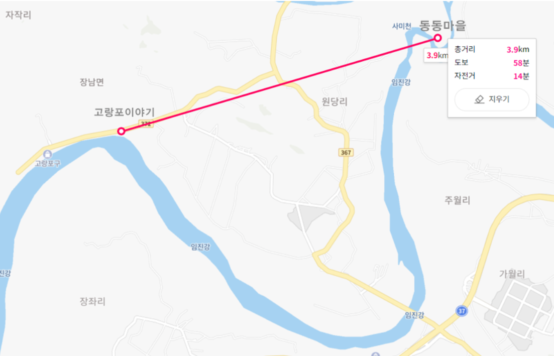 호로고루와 고랑포구 중간 지점에 있으며 동동마을보다는 약간 하류에 위치하고 있습니다.