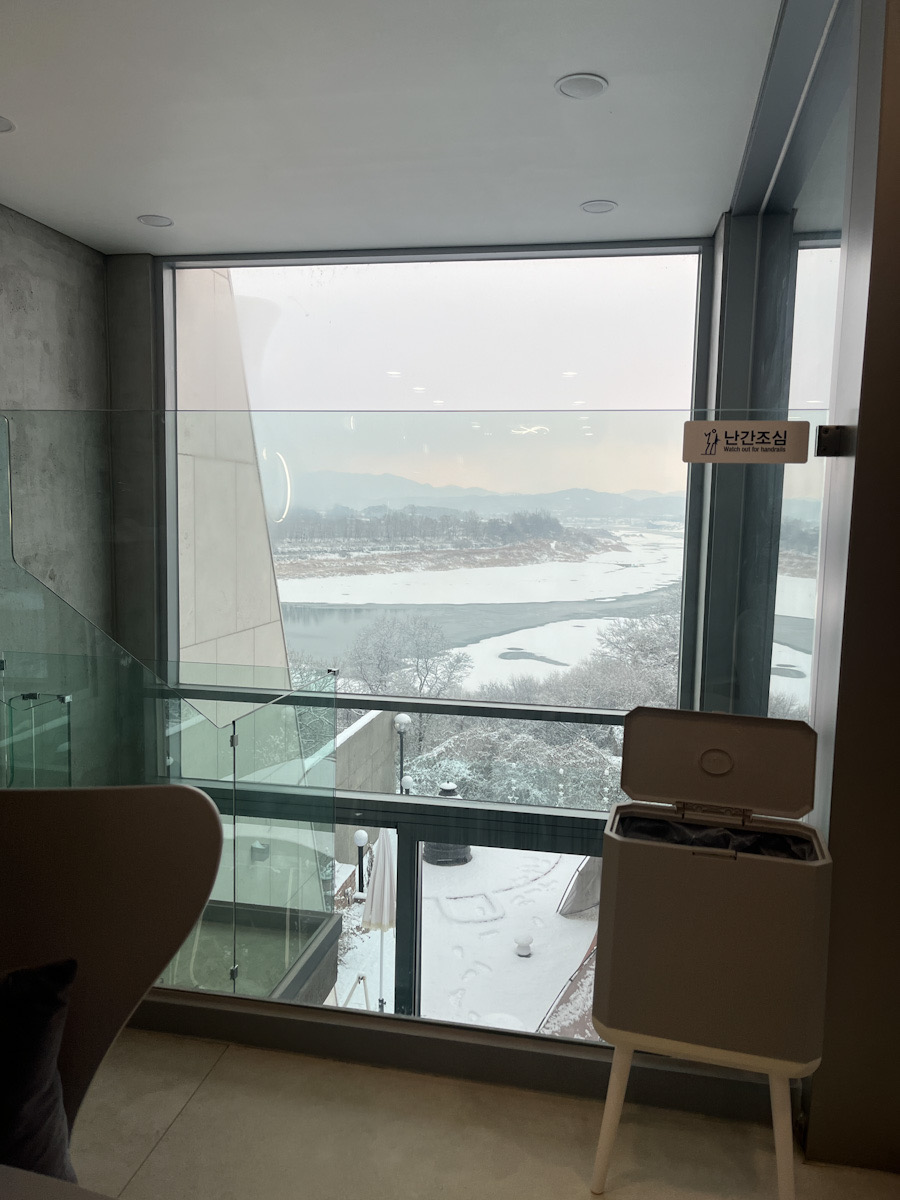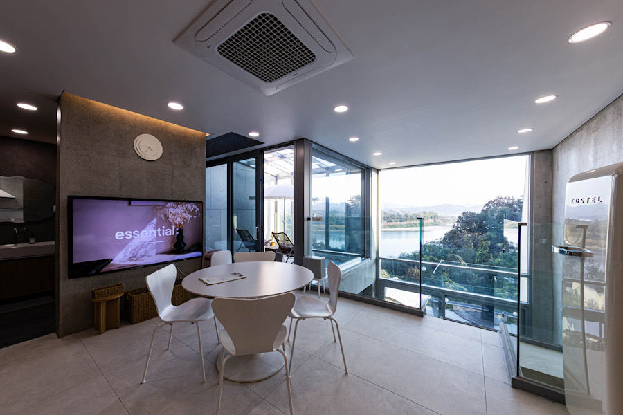 벨37은 현대적 감각의 인테리어와 대형 통유리창을 통해 전 객실에서 임진강의 파노라마 뷰를 감상할 수 있습니다.