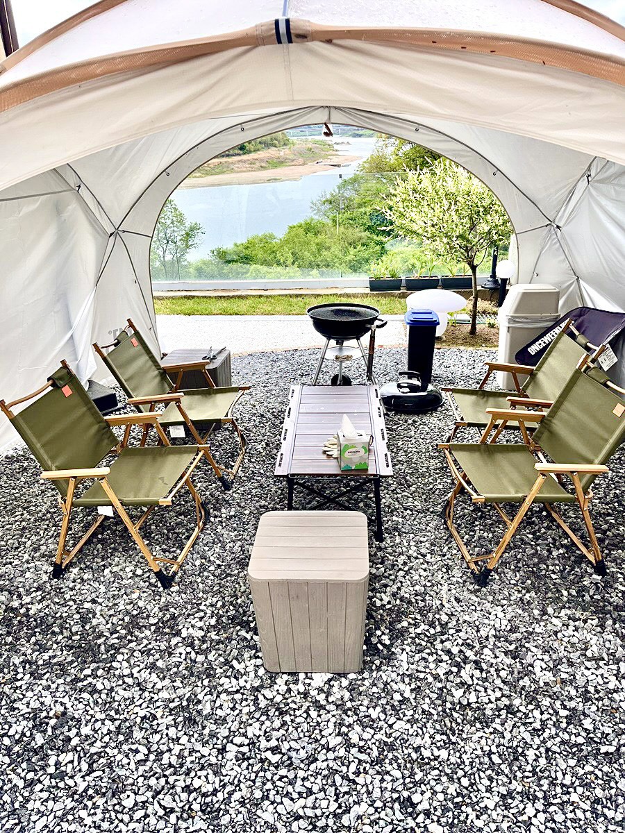 객실 내부와 별도로 마련된 전망 좋은 넓은 야외정원은 캠핑분위기를 만끽할 수 있는 로맨틱한 분위기의 스폿입니다.