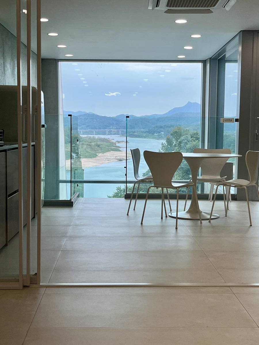 - 대형 통유리 창밖으로 보이는 임진강 뷰 덕분에 유럽 휴양지에 온 듯한 이국적인 느낌