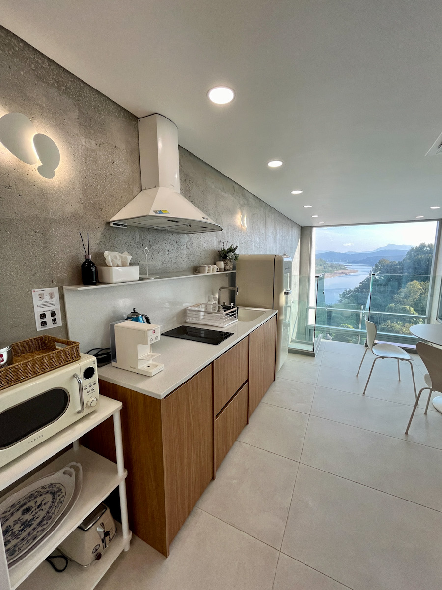 완벽한 키친 : 풀빌라 내에는 최신 주방 시설이 완비되어 있습니다. 인덕션, 전자레인지, 중형 냉장고는 물론, 각종 조리 도구와 식기가 충분히 구비되어 있어 직접 요리를 해 먹기에도 전혀 불편함이 없습니다.