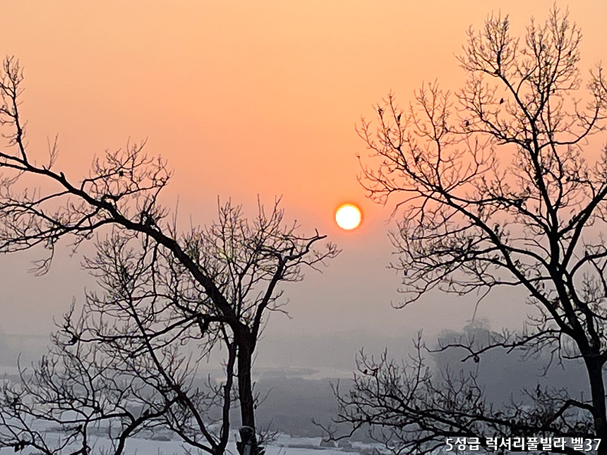 5성급 럭셔리 풀빌라펜션 벨37에서 멋진 해돋이를 감상하실 수 있습니다.