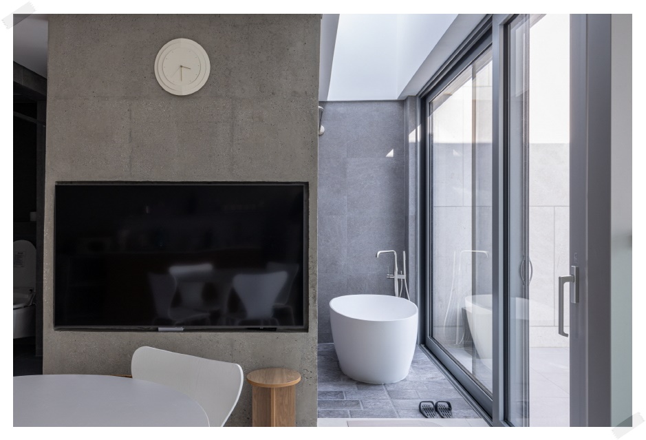 욕조에 누워 천창으로 낮과 밤 변화되는 하늘을 감상할 수도 있어요^^