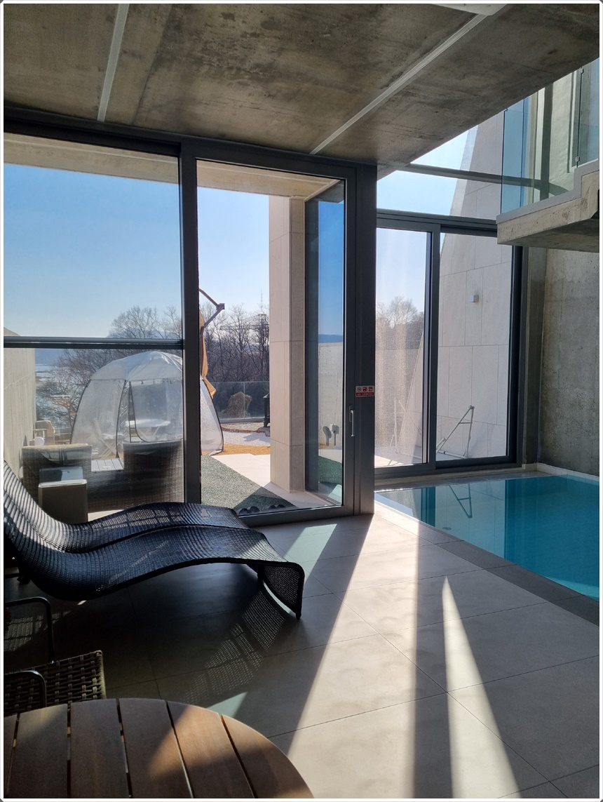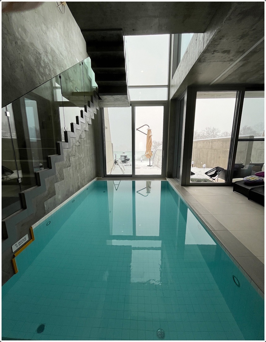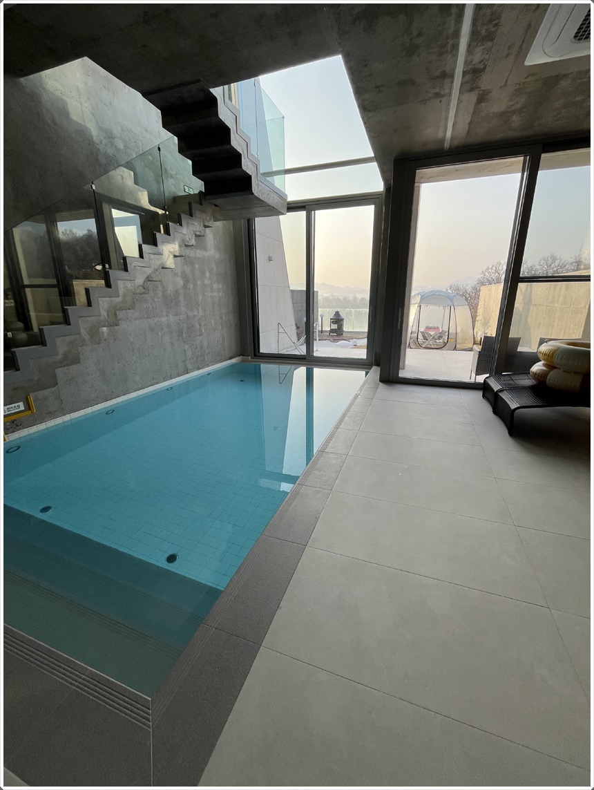 서울 일산 파주 근교에서 보기드믄 실내 대형 온수풀을 갖춘 리버스테이. 벨37의 대형 온수풀을 소개할께요~