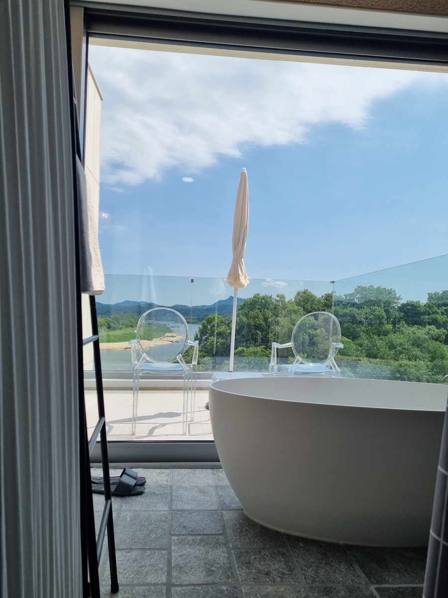 따뜻한 욕조에 몸을 담그고 개방감 있는 임진강 뷰를 감상할 수 있는 힐링 공간입니다.