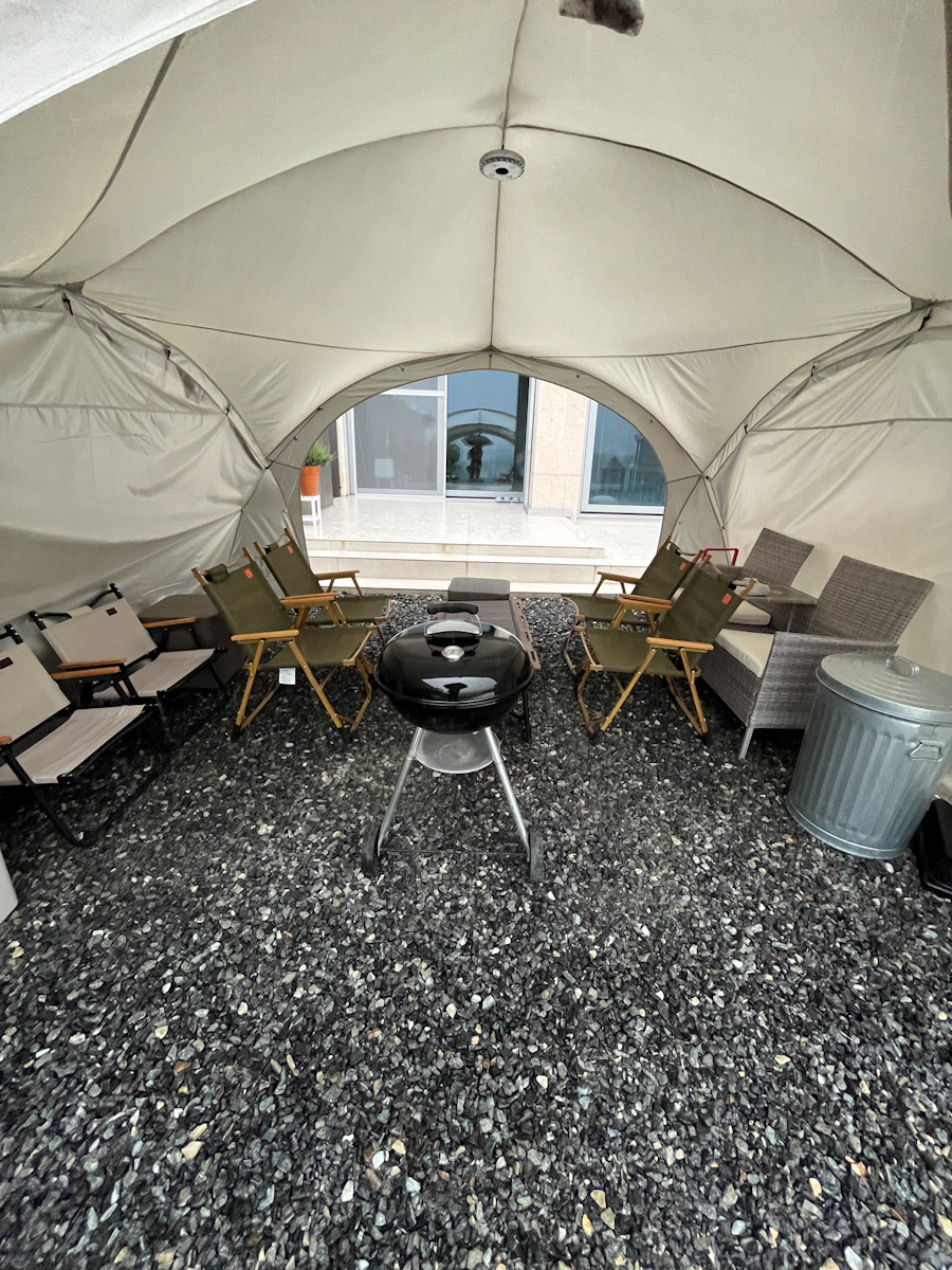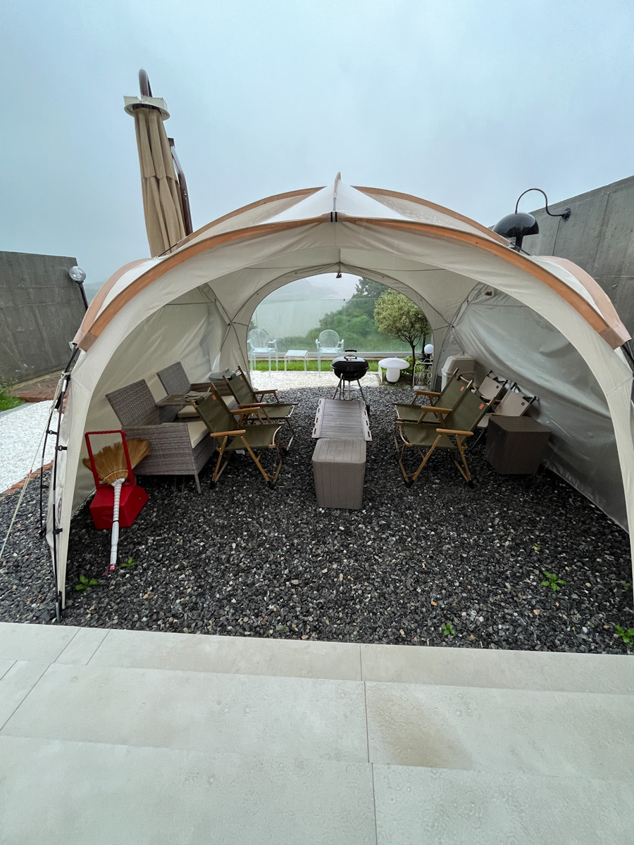 장맛비에도 남의 방해없이 개별 정원에서 캠핑 분위기 내면서 바비큐도 즐길 수 있습니다~!