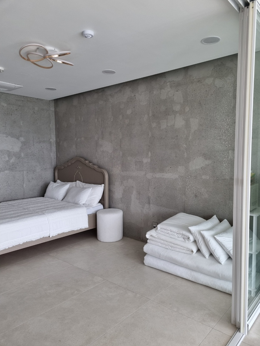 벨37 독채 풀빌라 펜션 내부는 모던하고 세련된 인테리어로 꾸며져 있으며, 깔끔한 디자인과 벨37만의 독창적인 샌딩 노출콘크리트 마감으로 고급스러우면서도 편안한 분위기를 연출합니다. 거실과 주방, 침실 모두 넓고 쾌적하게 설계 시공되어 있어 머무는 동안 집과 같이 편안함을 느낄 수 있습니다. 특히 전면으로 대형 통유리창이 설치되어 있어 자연 채광이 좋고, 외부의 이국적인 임진강뷰와 아름다운 경치를 감상할 수 있어 프라이빗하지만 답답하지 않은 개방형 숙소입니다. 이는 머무는 동안 힐링할 수 있는 요소로 자연 속에서 여유를 만끽할 수 있게 해 줍니다.