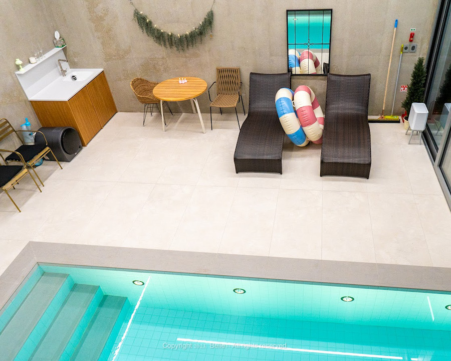 벨37 독채 풀빌라는 수영장이 실내에 위치해 있어 외부의 시선이나 날씨에 영향을 받지 않고, 완벽히 프라이빗한 공간에서 수영을 즐길 수 있습니다. 이는 커플에게는 로맨틱한 분위기를, 가족에게는 아이들이 안전하게 물놀이할 수 있는 환경을 제공합니다.
