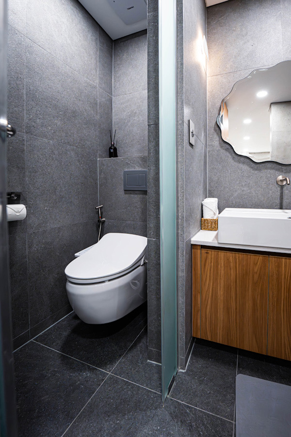 건식 화장실은 유럽식 벽걸이 양변기가 설치되어 있어 쾌적한 컨디션을 유지합니다.