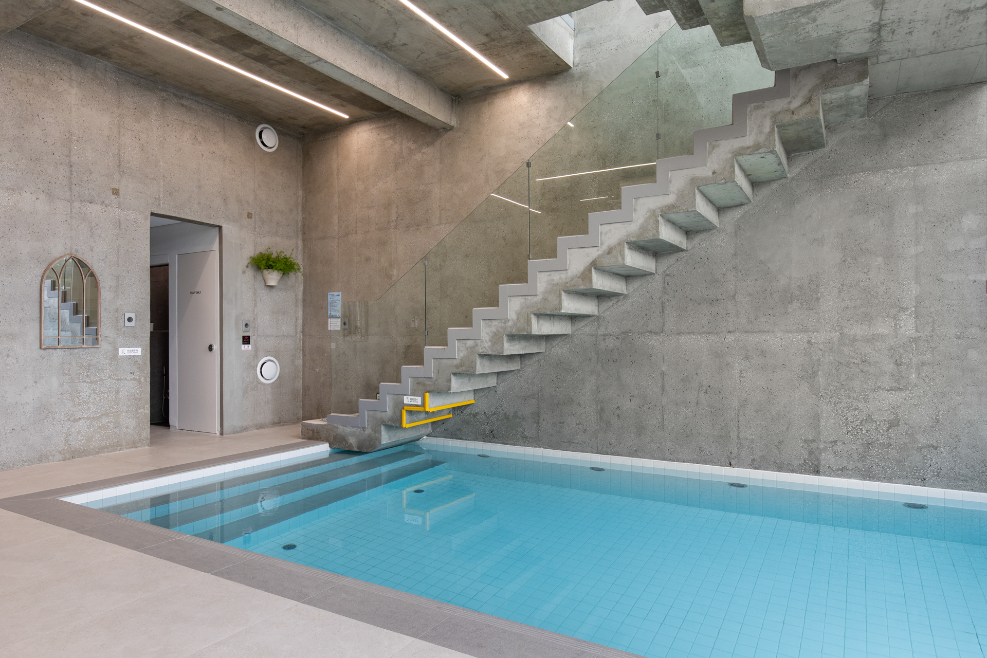수영장 홀에 내려가는 순간, 마치 럭셔리 리조트의 로비에 들어선 듯한 압도적인 스케일과 세련된 감각이 시선을 사로잡습니다.