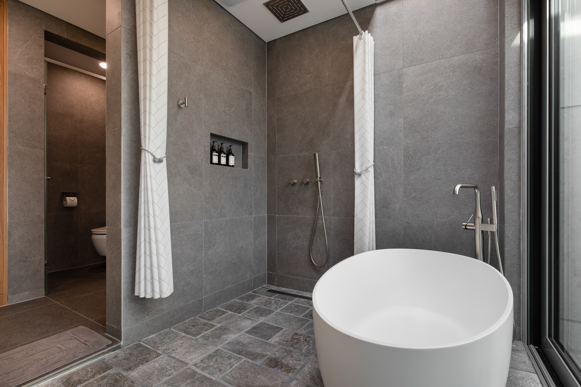 모던한 인테리어와 절제된 조명, 감각적으로 매립된 수전이 어우러져 마치 고급 호텔 스파에 머무는 듯한 경험을 선사하며, 세심한 구조는 타인의 시선을 완벽히 차단한 채 오롯이 나에게 집중할 수 있도록 도와줍니다.