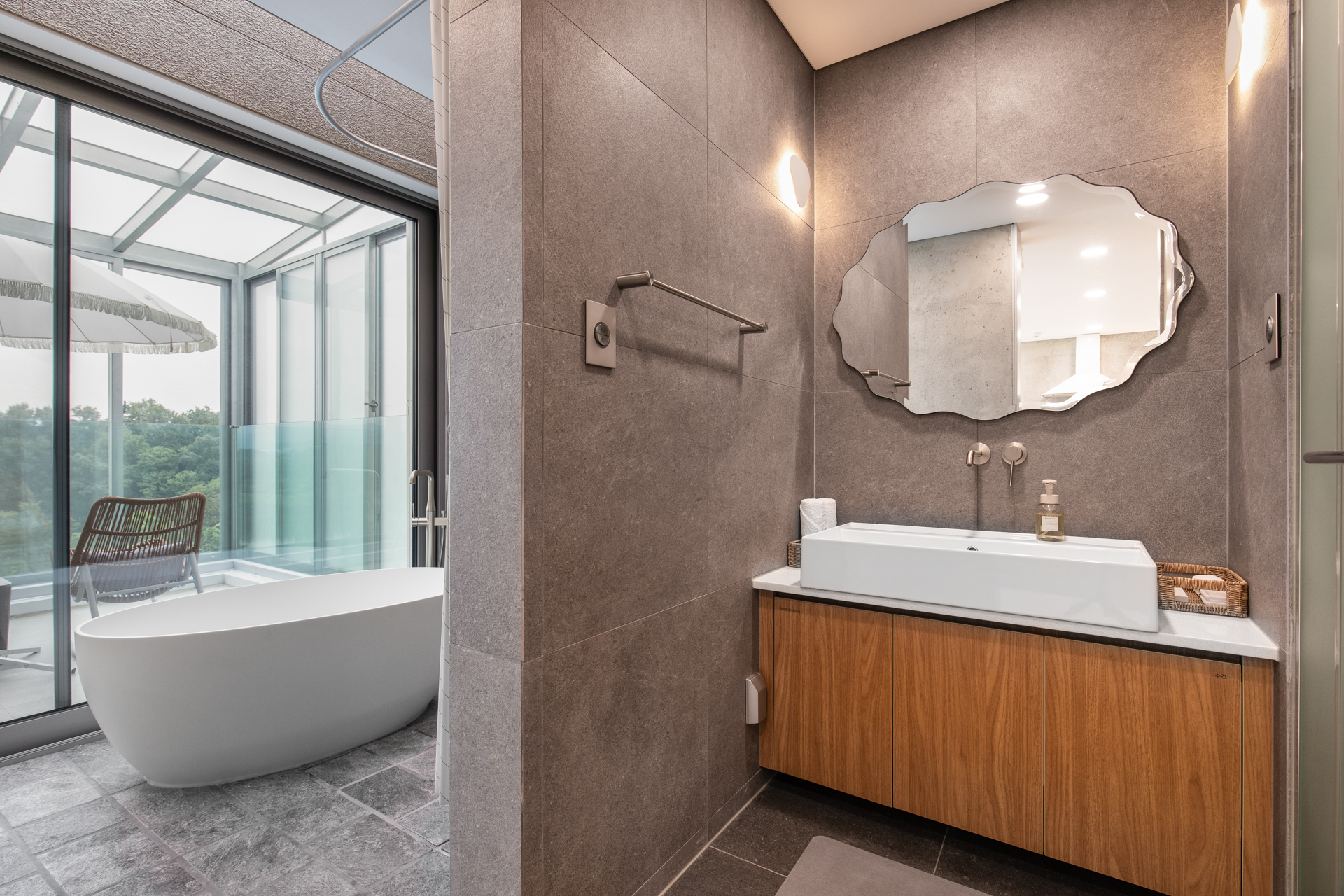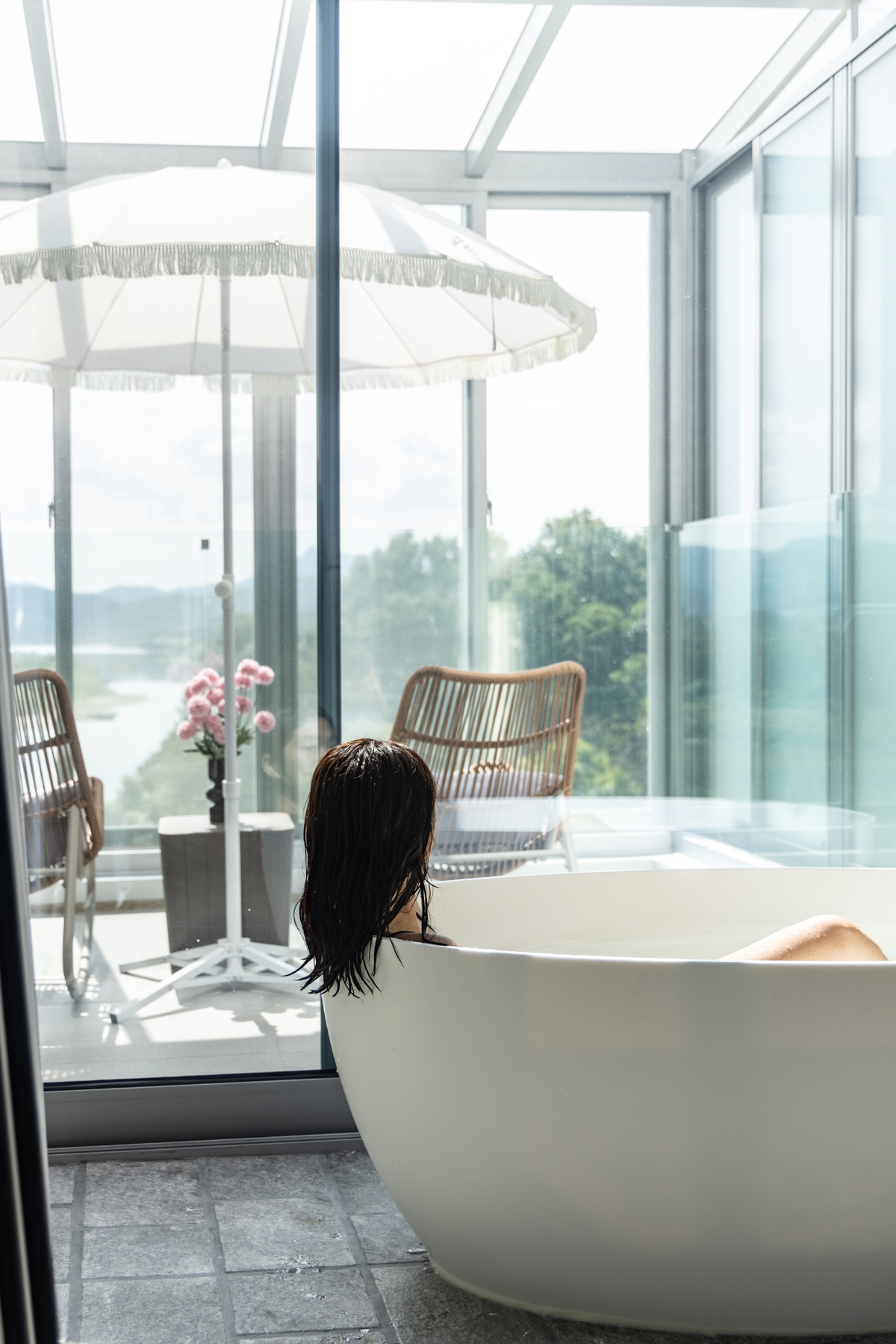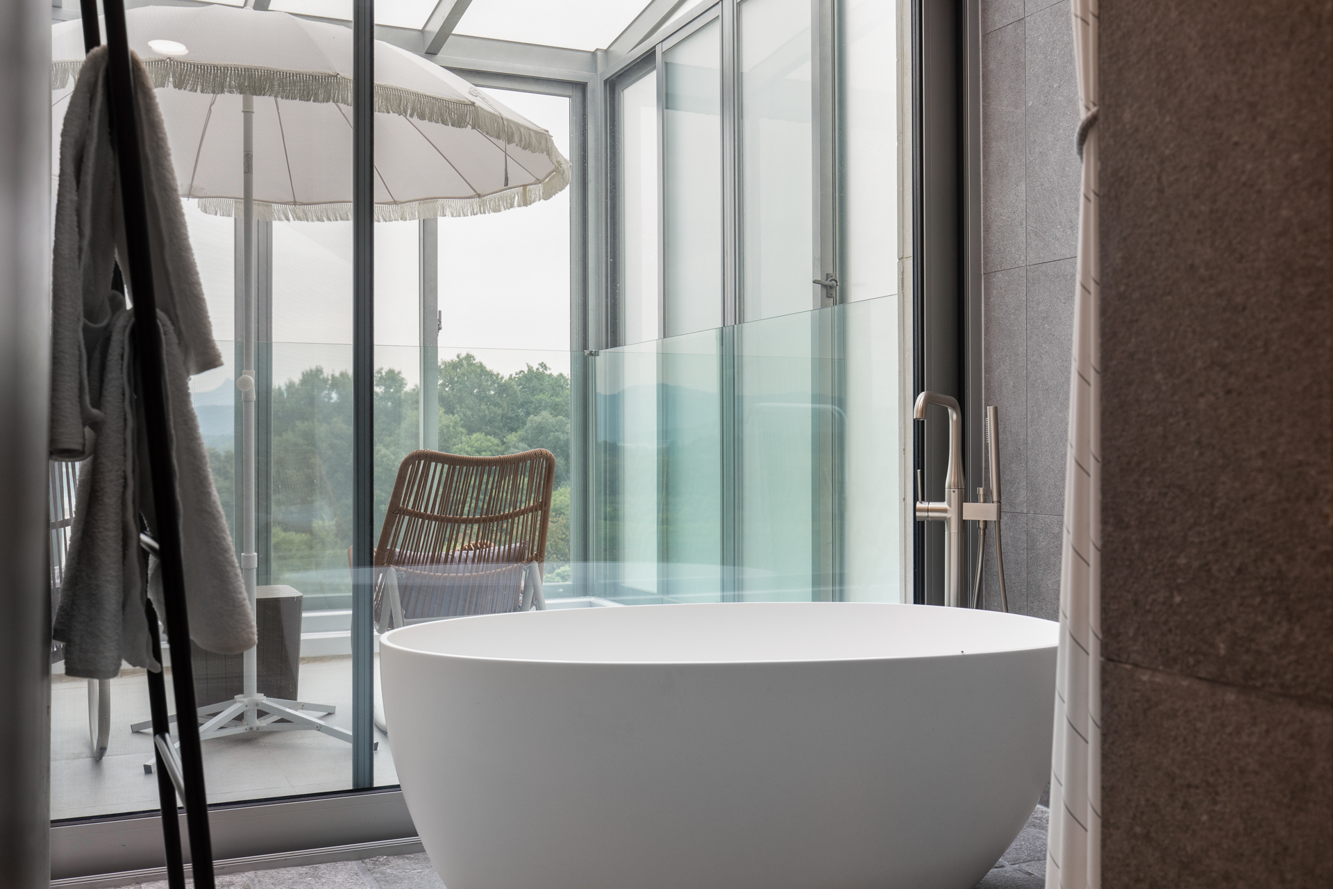벨37 욕실에 놓인 전망 좋은 욕조는, 자연과 나 사이의 경계를 허무는 창과도 같죠