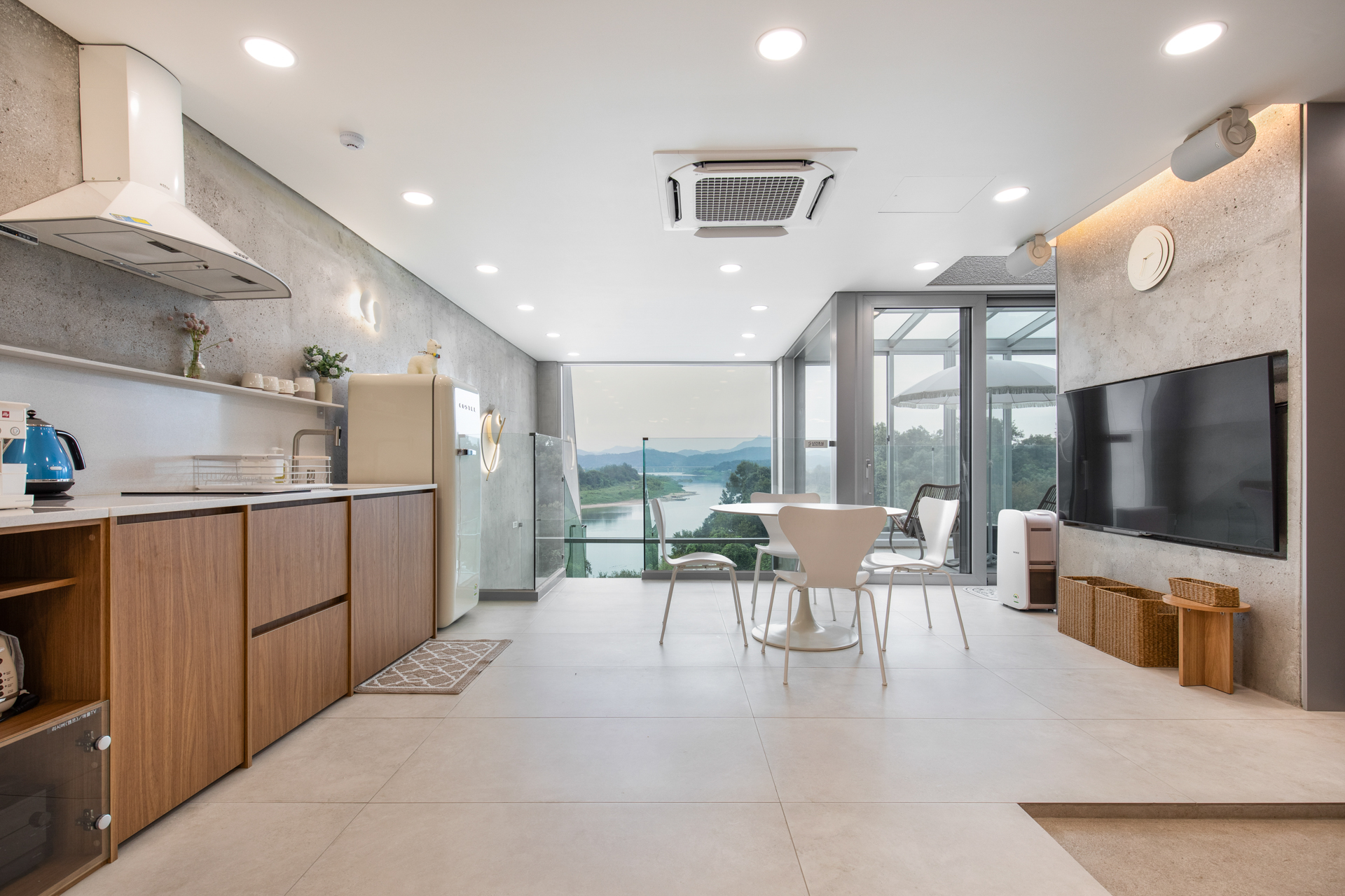 고급스러운 인테리어와 함께 갖춰진 프리미엄 주방 시설은 요리하는 즐거움까지 더해주며, 가족 또는 친구들과 함께하는 소중한 시간을 더욱 특별하게 만들어줍니다. 여유로운 식탁 공간에서는 자연을 바라보며 브런치를 즐기거나, 와인 한 잔과 함께 저녁의 낭만을 누릴 수 있어요.